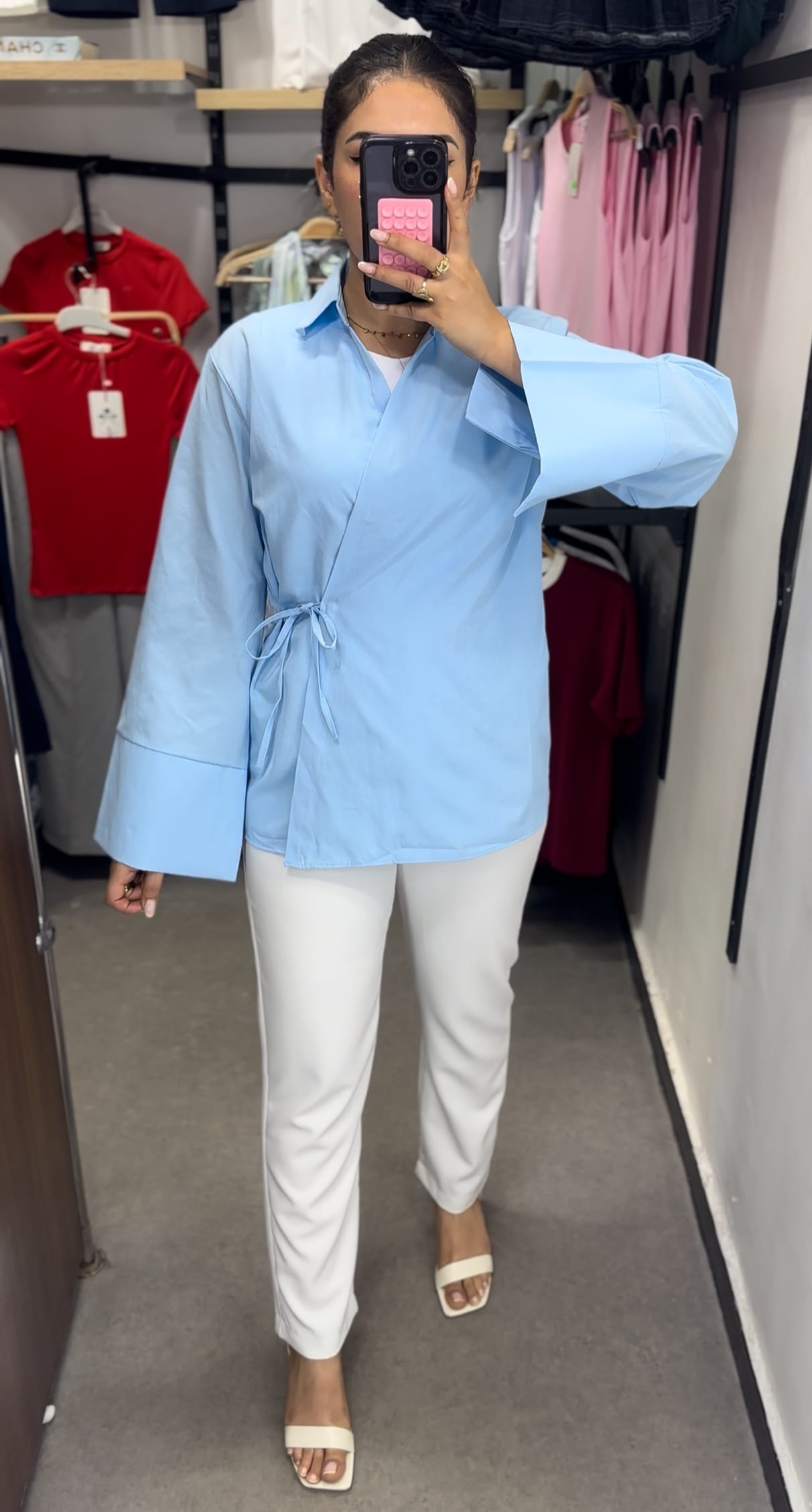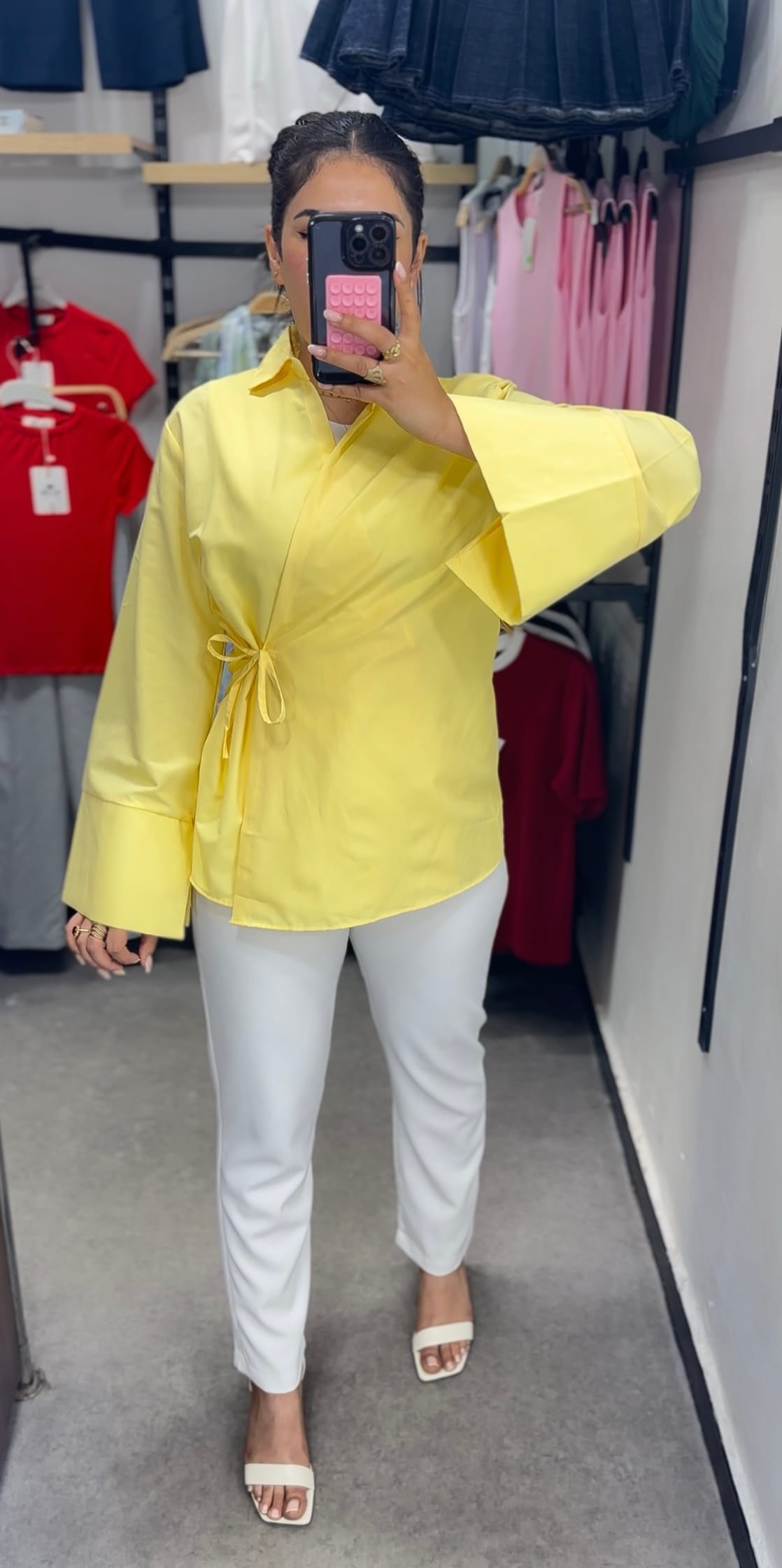 Craquez pour la chemise “Livia”, un modèle tendance au style minimaliste et féminin. Avec ses manches larges, sa coupe asymétrique et son lien à nouer à la taille, elle allie confort et élégance.