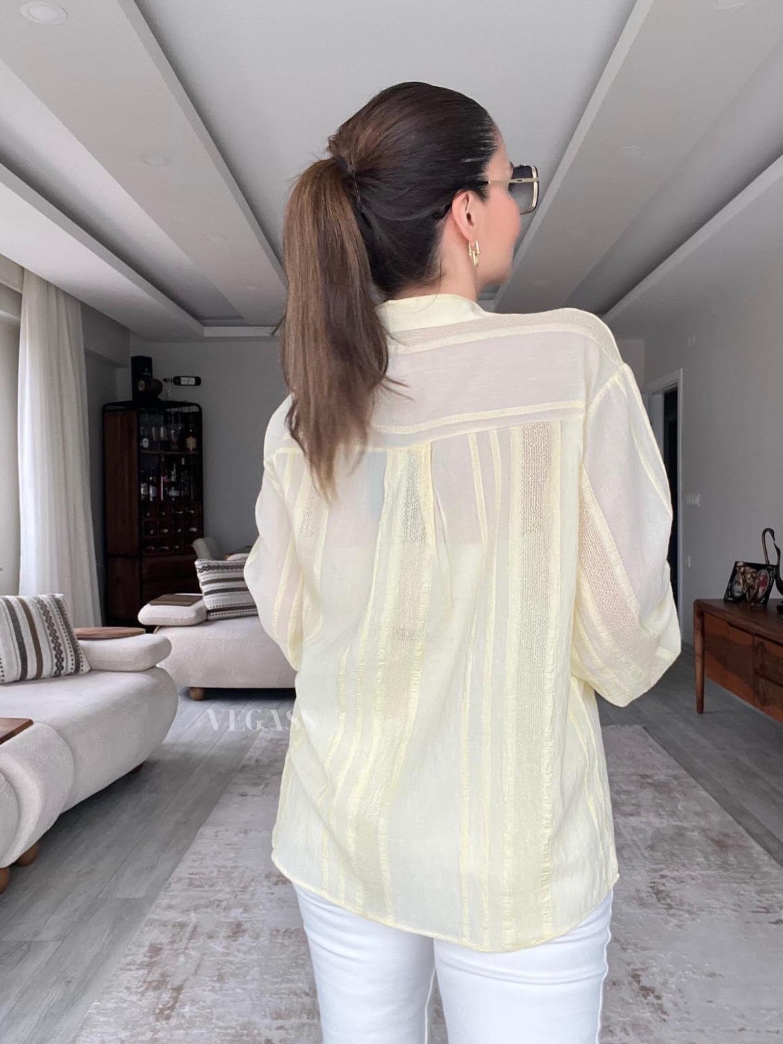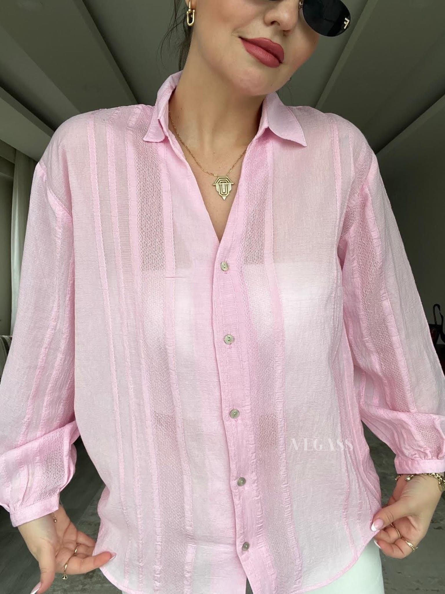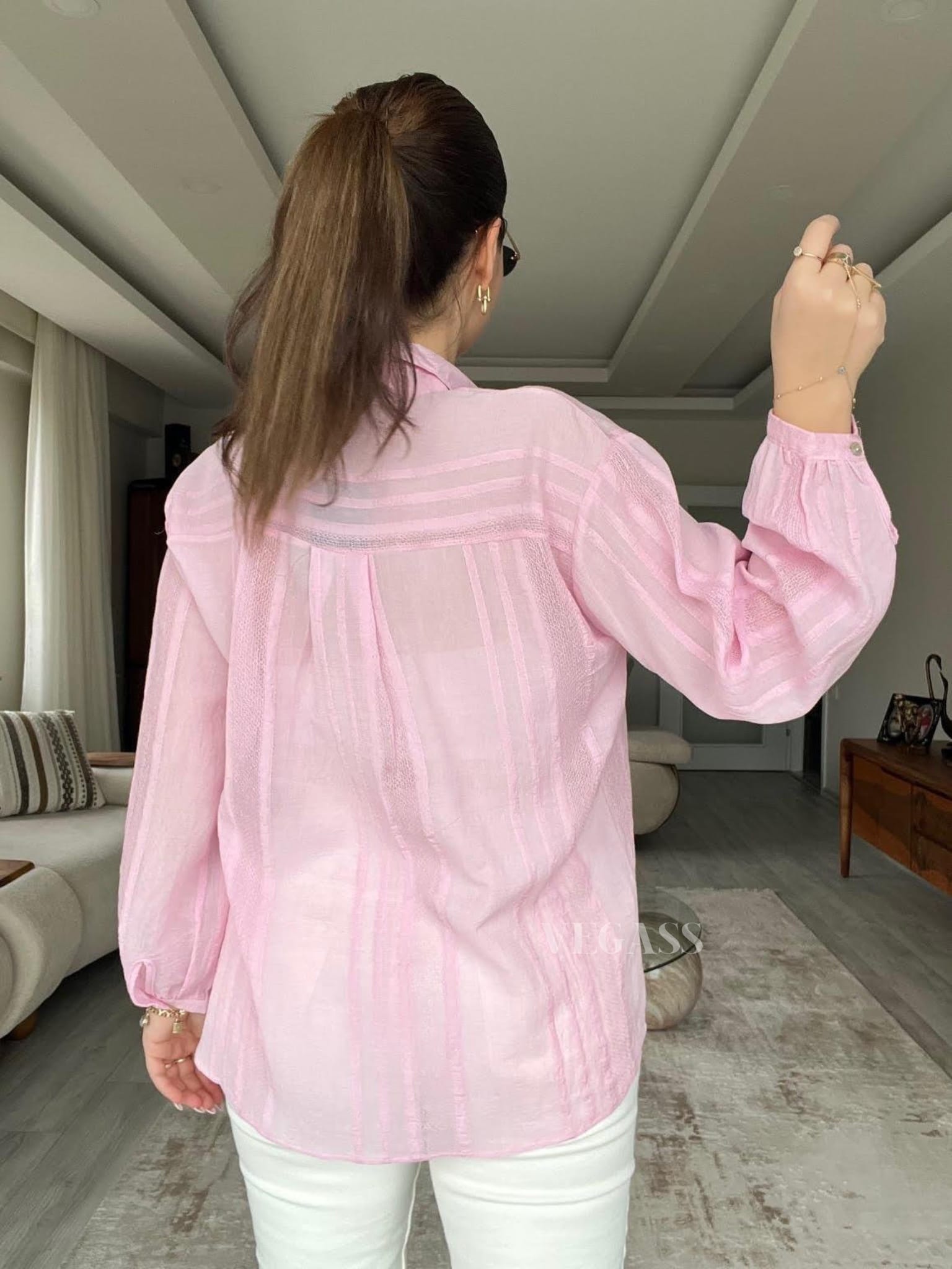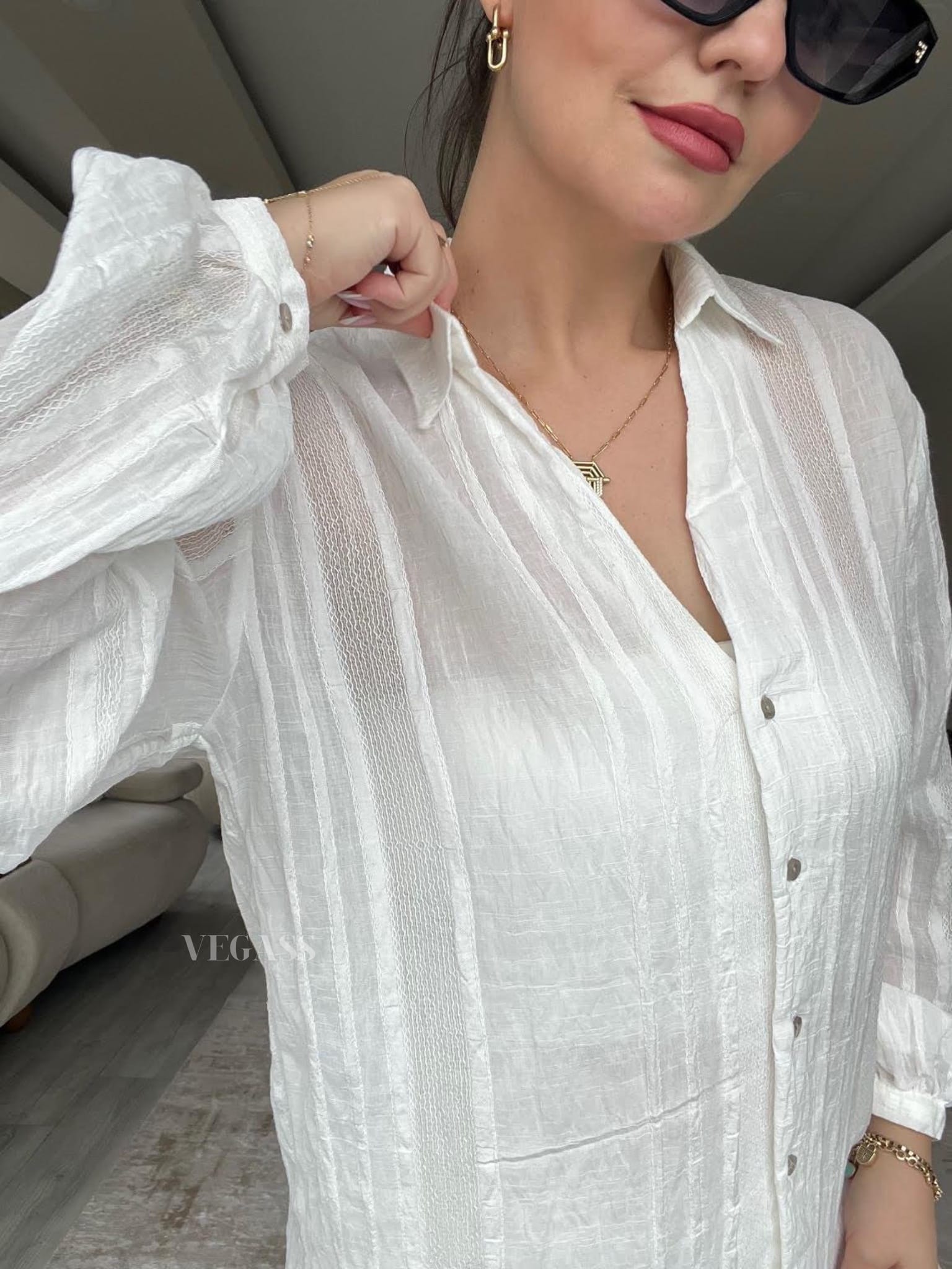 ☁️ Tissu léger effet froissé – Idéal pour un look casual chic Craquez pour cette chemise légère au charme naturel et au tissu subtilement rayé. Confectionnée dans une matière douce et respirante, elle est parfaite pour la saison estivale. Son design légèrement transparent et ses manches bouffantes apportent une touche d’élégance décontractée à vos tenues