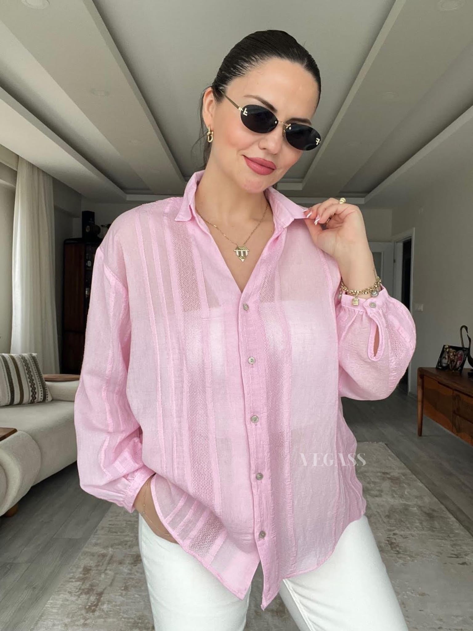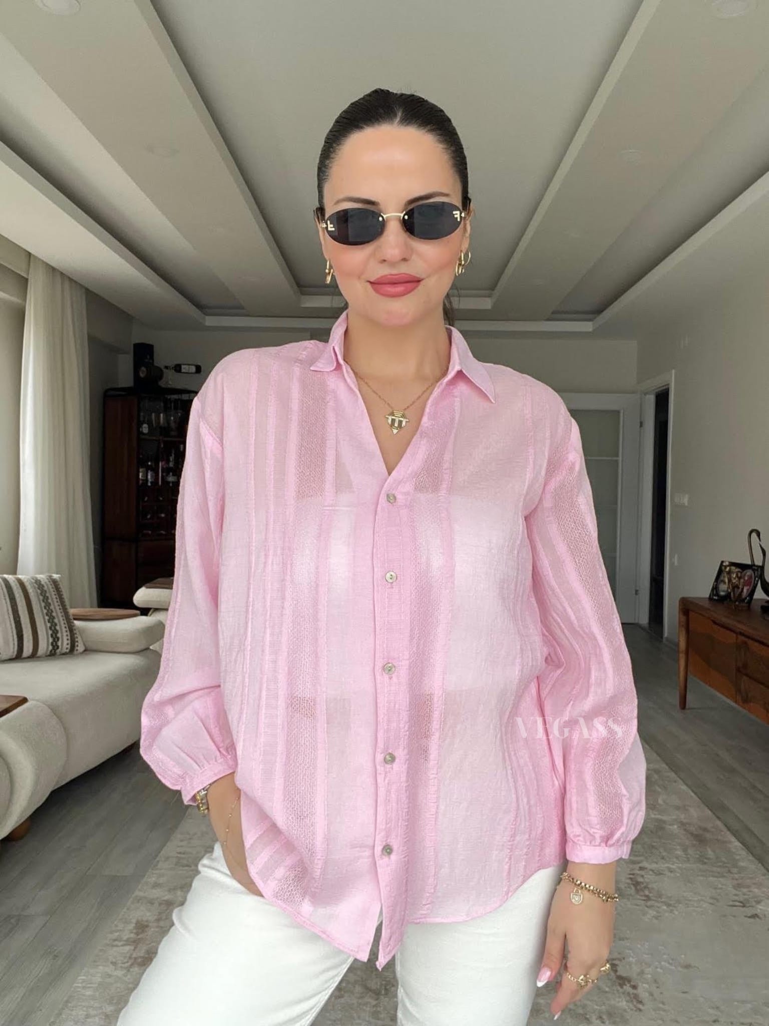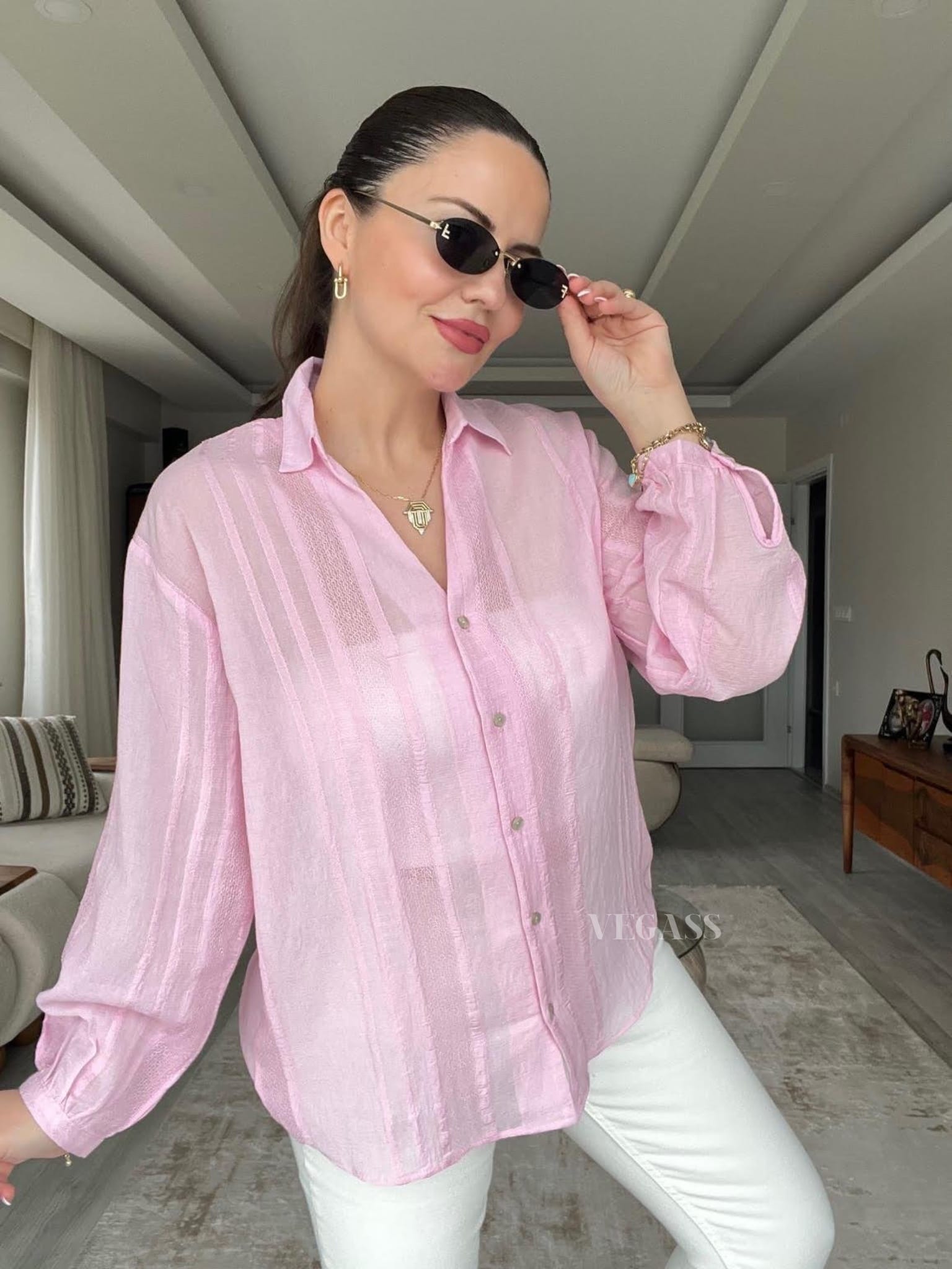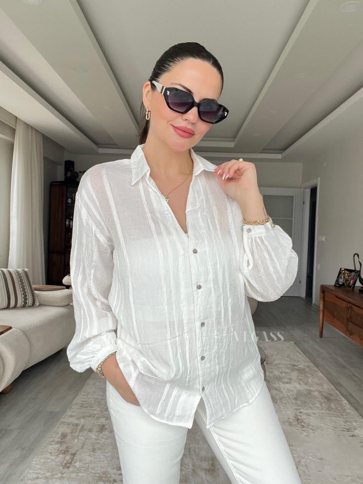 ☁️ Tissu léger effet froissé – Idéal pour un look casual chic Craquez pour cette chemise légère au charme naturel et au tissu subtilement rayé. Confectionnée dans une matière douce et respirante, elle est parfaite pour la saison estivale. Son design légèrement transparent et ses manches bouffantes apportent une touche d’élégance décontractée à vos tenues