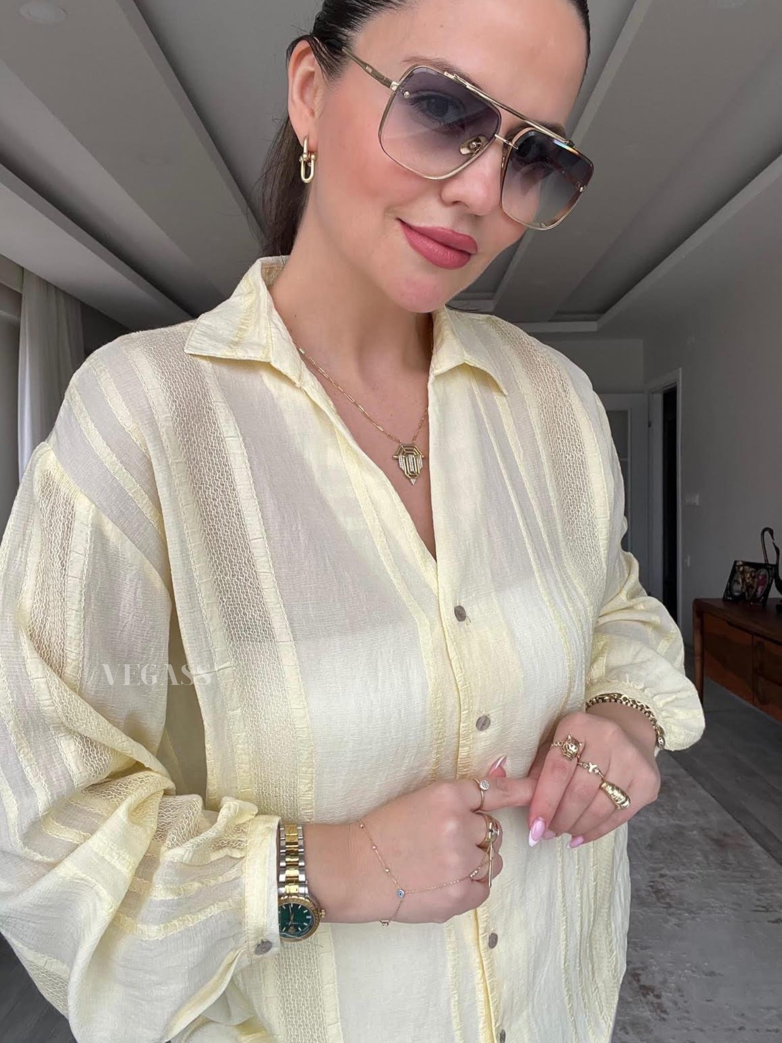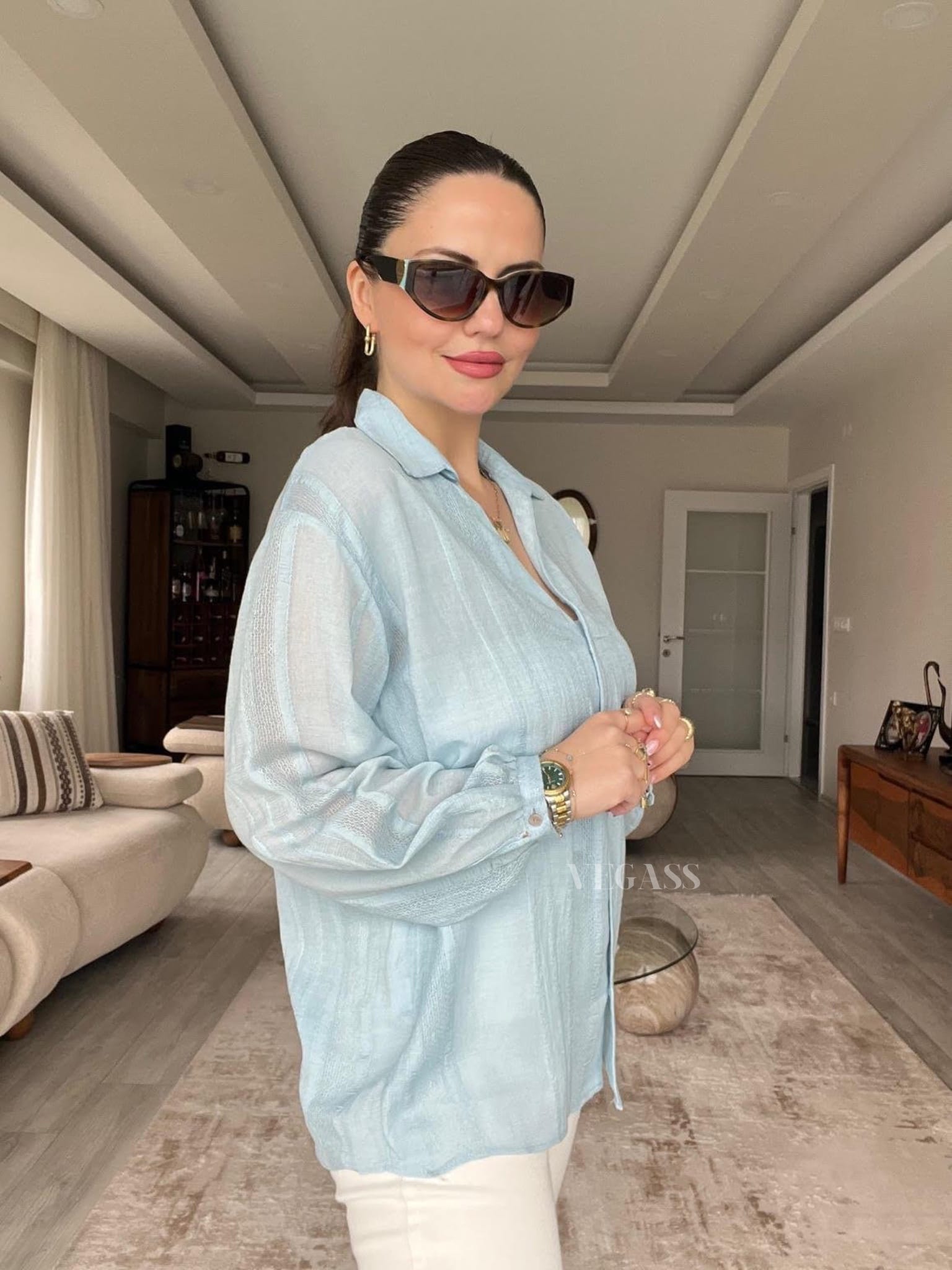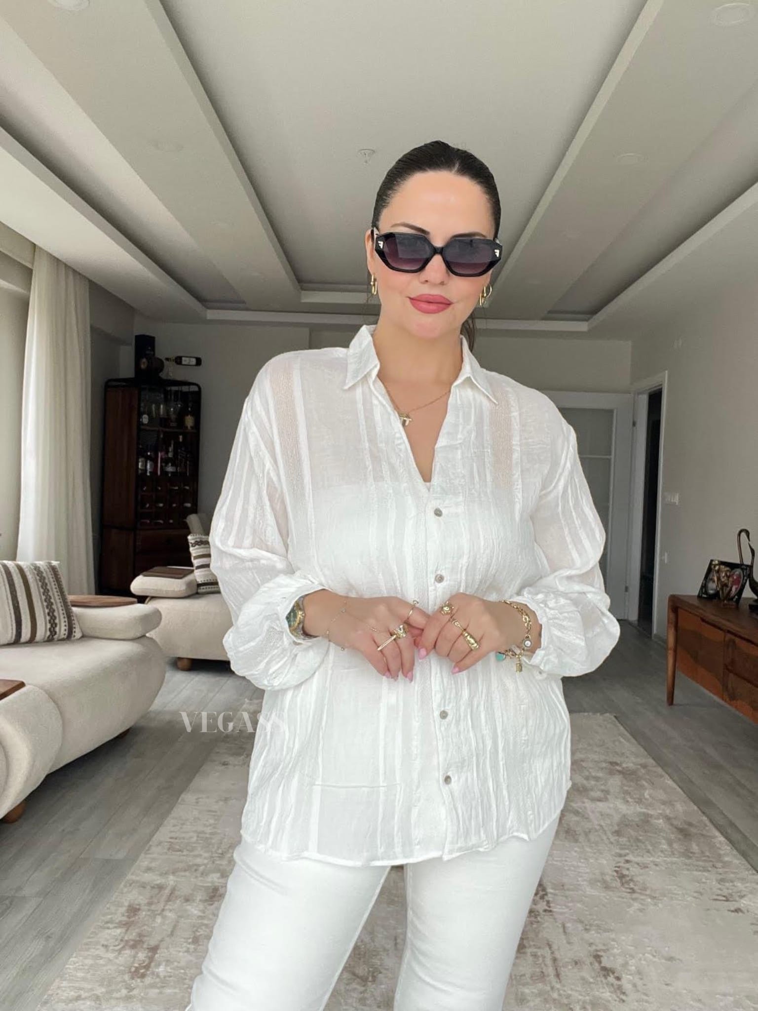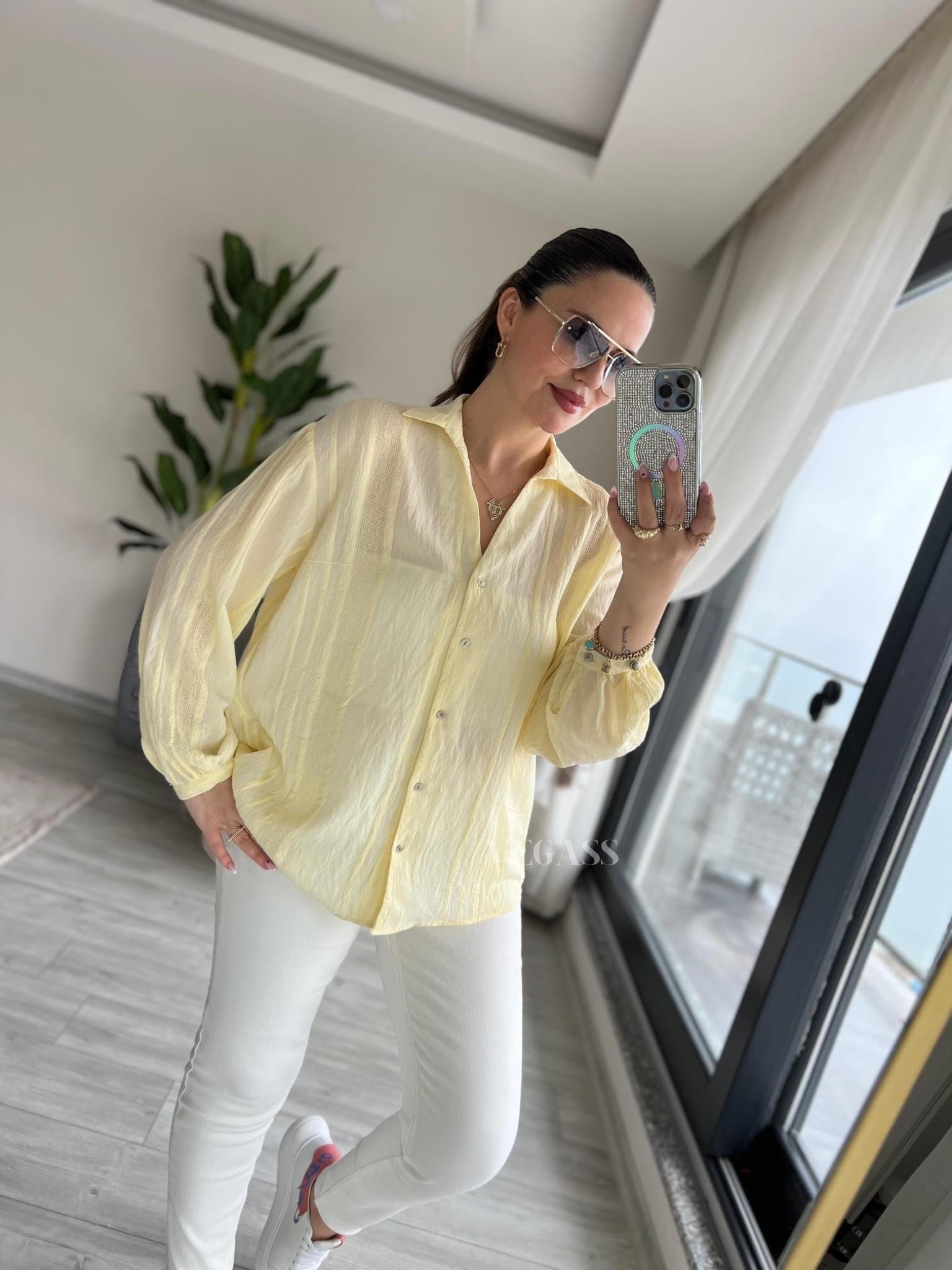 ☁️ Tissu léger effet froissé – Idéal pour un look casual chic Craquez pour cette chemise légère au charme naturel et au tissu subtilement rayé. Confectionnée dans une matière douce et respirante, elle est parfaite pour la saison estivale. Son design légèrement transparent et ses manches bouffantes apportent une touche d’élégance décontractée à vos tenues