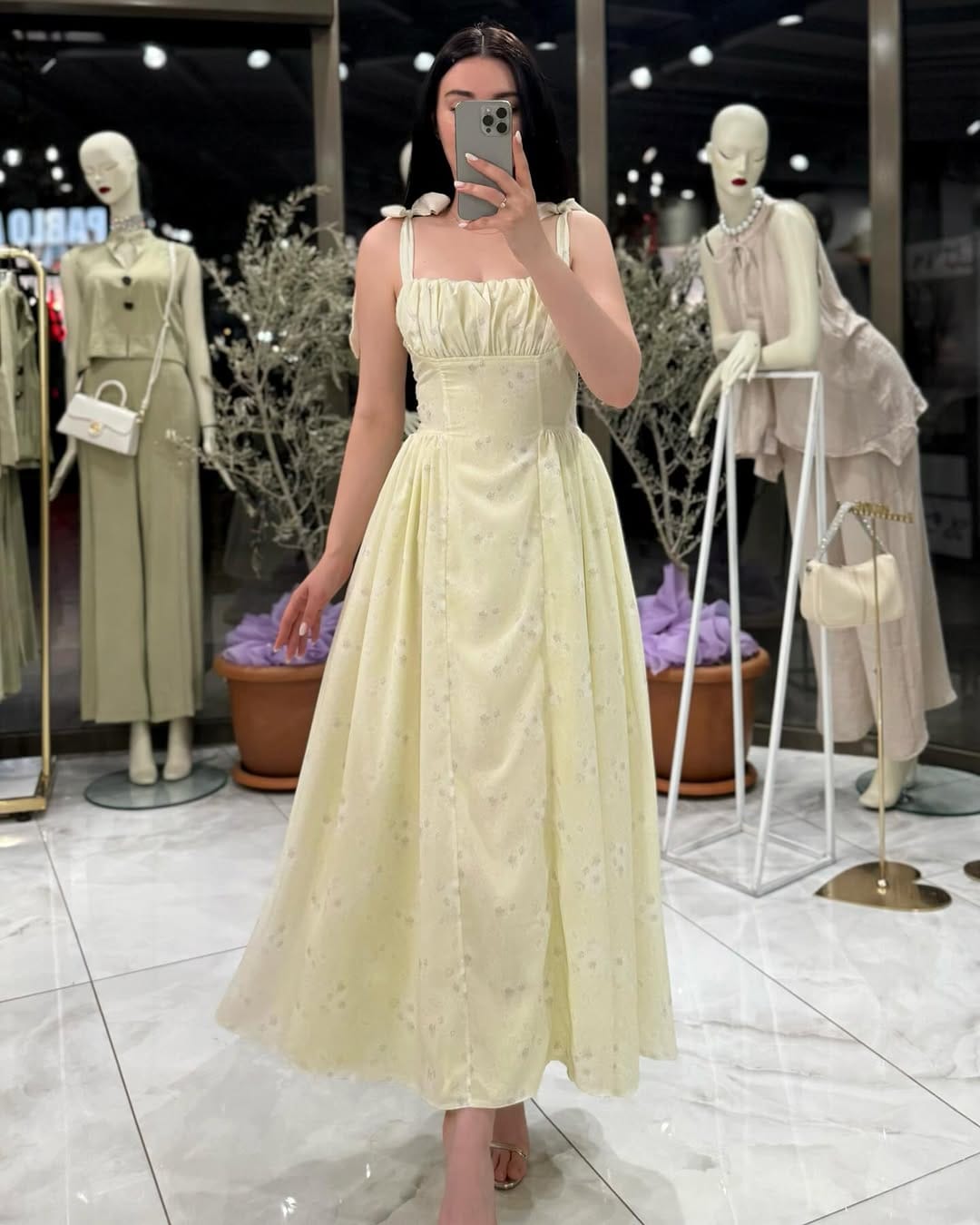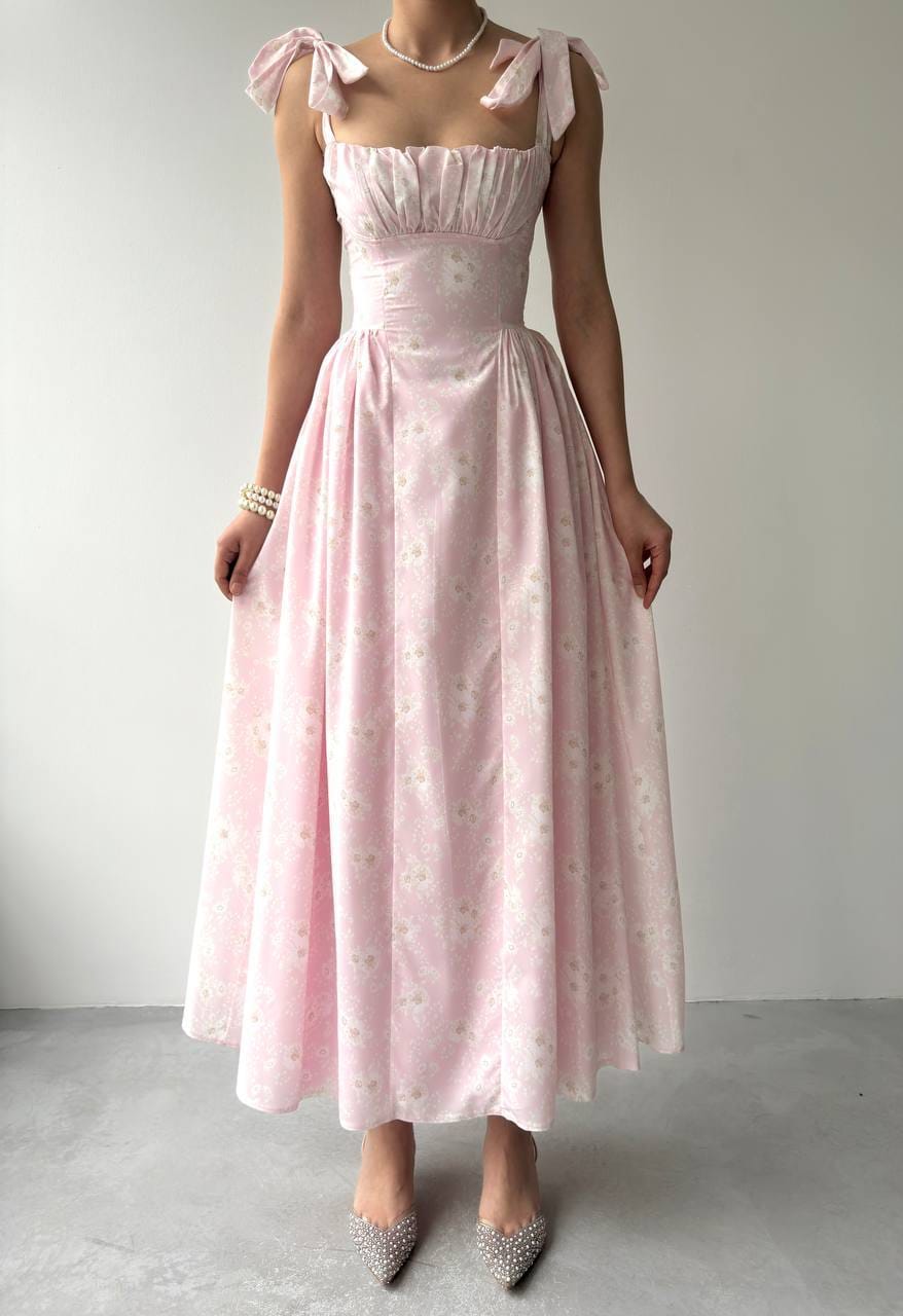 🌸 Robe longue romantique à nouer aux épaules 🌼