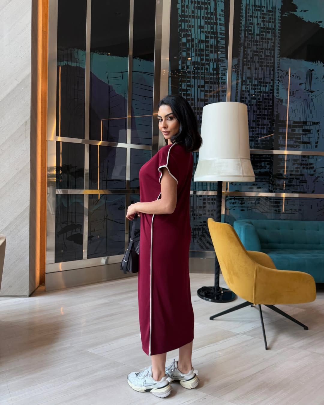 Robe OYSHO vibes – coupe fluide, tissu doux et confortable , détail liseré chic.
